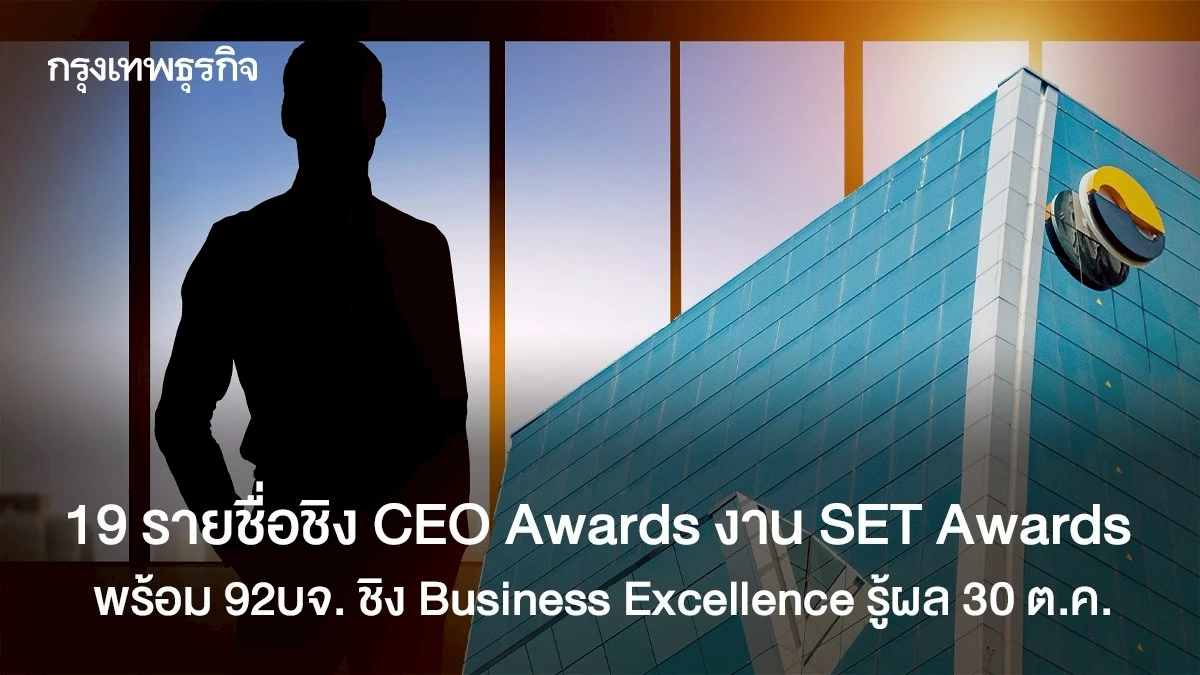 SET Awards ประจำปี 2568 ประกาศรายชื่อ 19 ซีอีโอ และบริษัทที่เข้าชิง SET Awards 2568 กลุ่มรางวัล Business Excellence 92 บริษัท และ กลุ่มรางวัล Sustainability Excellence 45 บริษัทประกาศรางวัล 30 ต.ค