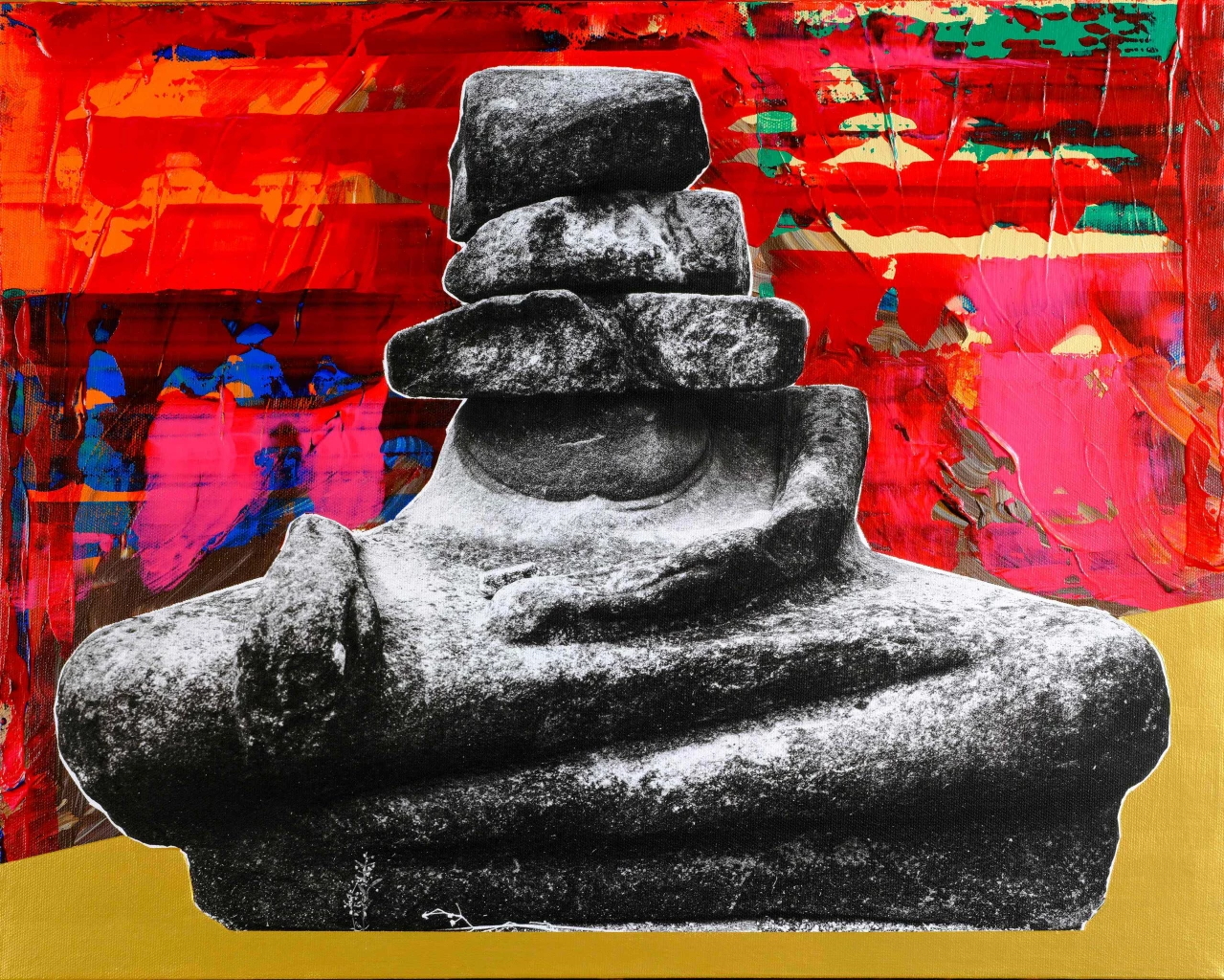 มานิตนำเอาภาพถ่ายพระพุทธรูปหินแปลกประหลาดมาวาดระบายสี เพื่อสื่อสะท้อนอารมณ์ความรุนแรงและความมืดมนทางจิตใจที่ไร้ทางออกของยุคสมัยปัจจุบัน ตรงข้ามกับสภาพบ้านเมืองที่ดูปกติสงบสุข ไร้ความขัดแย้งที่มองเห็นด้วยตาเปล่า