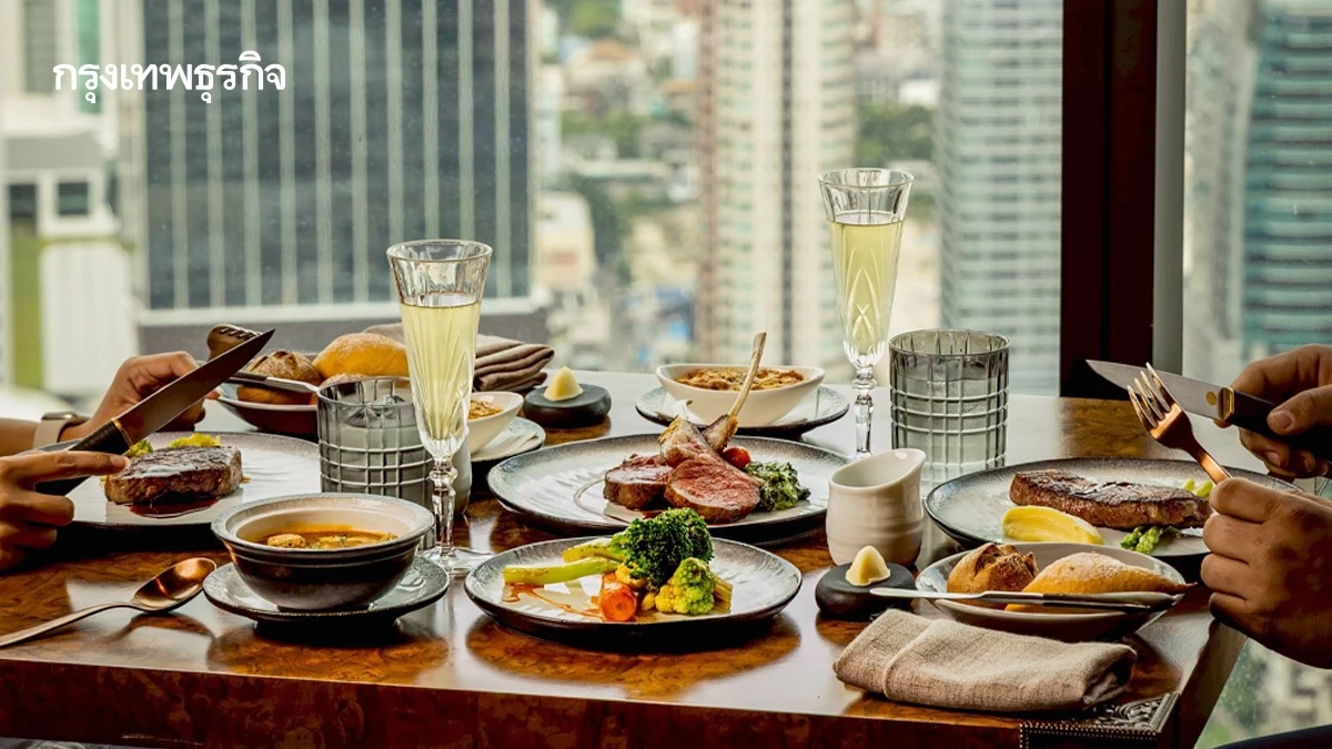 เซมิบุฟเฟ่ต์ ที่เสิร์ฟท่ามกลางบรรยากาศวิวเมืองกรุงเทพฯ อันงดงามบน ชั้น 55 Surf &Turf Extravaganza Weekend ให้บริการทุกวันเสาร์ และวันอาทิตย์