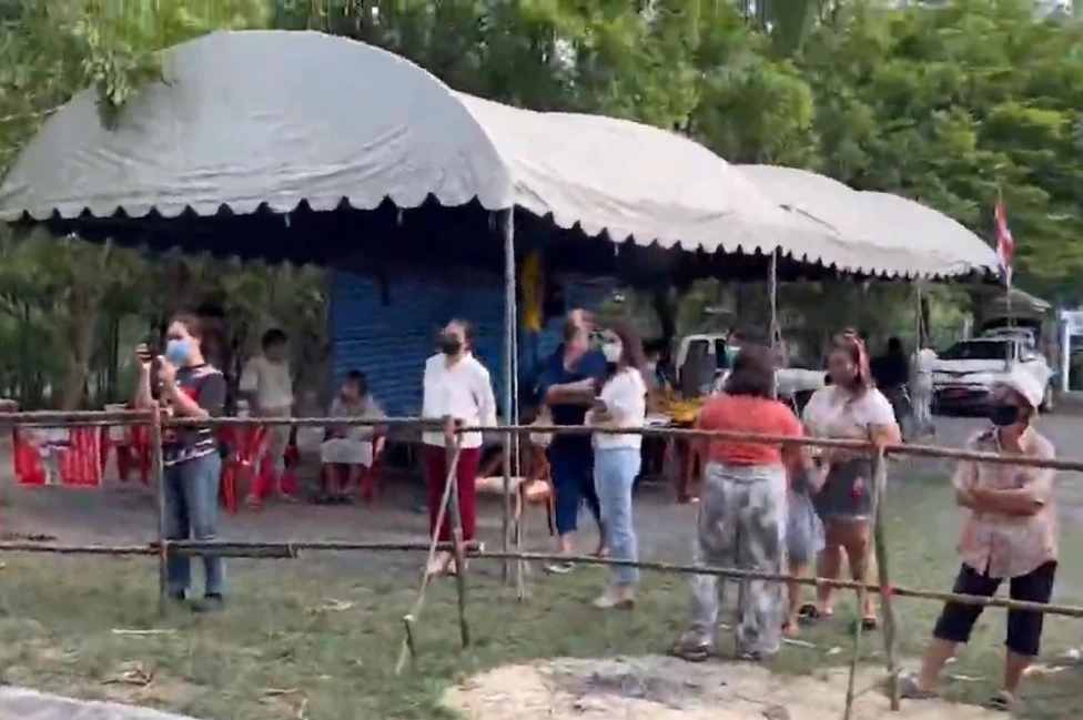 พบมีชาวบ้านจำนวนมาก ทยอยเดินเข้าไปในบ้านหลังใหญ่หลังหนึ่ง ซึ่งมีช้างเผือกอยู่หน้าบ้าน ใต้เต็นท์ขนาดใหญ่ มีผู้ดูแลช้างหลายสิบคน คอยให้บริการ การกราบไหว้และถ่ายรูป