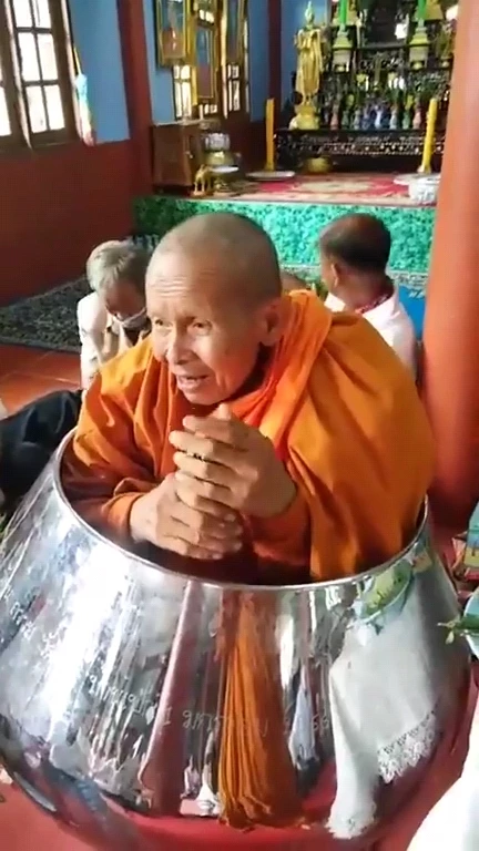 เพจเฟซบุ๊ก ข่าวสารงานพระพุทธศาสนา โพสต์คลิปพระสงฆ์รูปหนึ่ง กำลังนั่งฉันข้าวในบาตรยักษ์ โดยนั่งในบาตรขนาดใหญ่ แล้วฉันข้าว ฉันน้ำ ฉันเครื่องดื่มชูกำลัง โดยมีข้อความระบุว่า “พระเดชพระคุณหลวงพ่อ จ.ร้อยเอ็ด ฉันข้าวในบาตร”