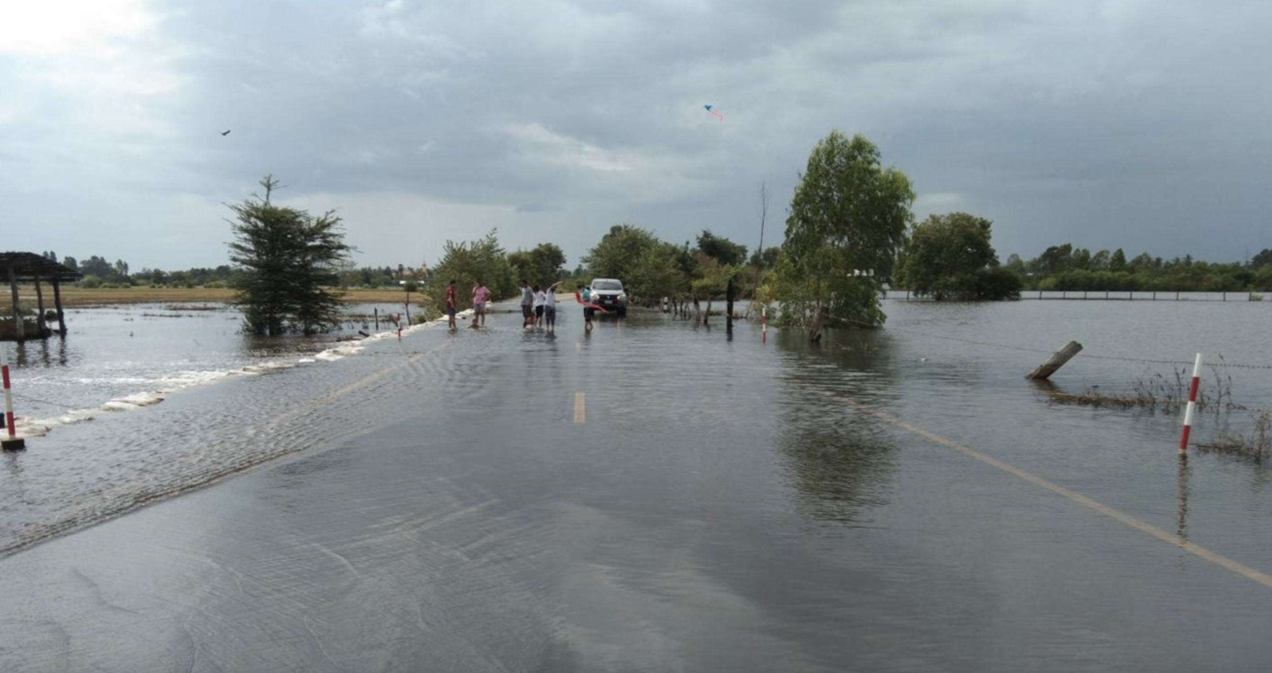3. สายทาง สร.012 ถนนเชิงลาดสะพานใหม่นาหนองไผ่ - กระโพ อำเภอท่าตูม และชุมพลบุรี จังหวัดสุรินทร์ น้ำท่วมสูง 60 เซนติเมตร (ช่วง กม. ที่ 1+000 - 7+000)