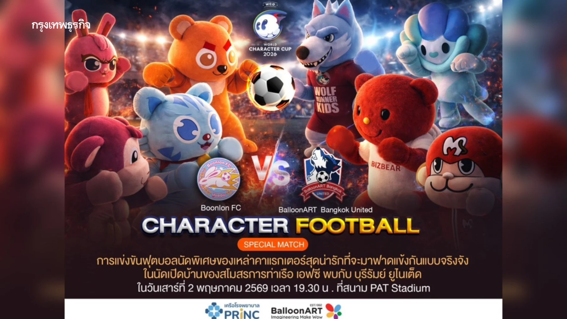 ศึกมาสคอตระเบิดศึกสายคิวท์ครั้งแรกในไทย "World Character Cup 2026" แมตช์หยุดโลกมาสคอต ไทย-ญี่ปุ่น บุก "แพท สเตเดียม"