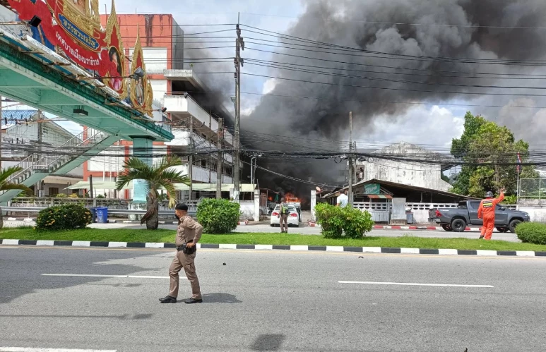 กลุ่มควันและไฟกำลังลุกไหม้รถที่จอดอยู่ด้านในสุดของแฟลตตำรวจ โดยรถคันดังกล่าวคาดว่า น่าจะเป็นรถเป้าหมายที่ถูกกลุ่มคนร้าย แอบนำระเบิดมาซุกซ่อนเอาไว้ พร้อมกับตั้งเวลาในการจุดชนวนระเบิด
