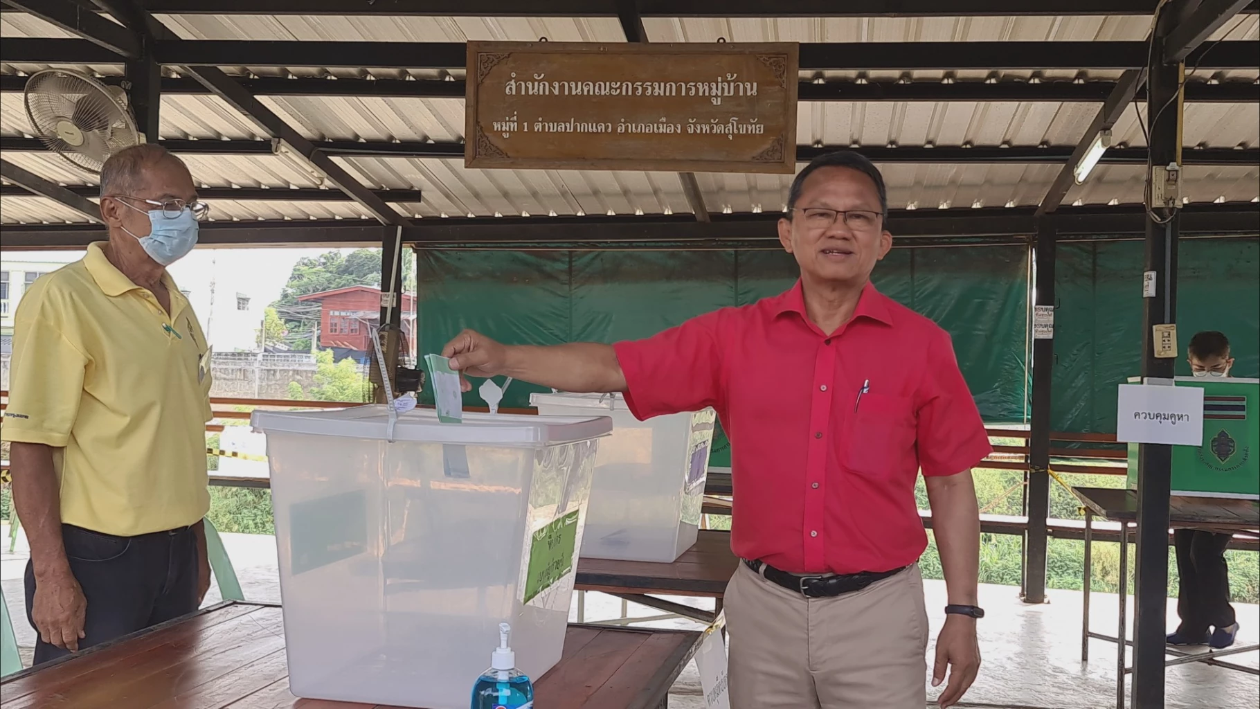 ขณะที่บริเวณอาคารจอดรถจักรยานยนต์ศาลากลางจังหวัดสุโขทัย หน่วยเลือกตั้งที่ 13 ของเขตเลือกตั้งที่ 1 ตำบลธานี อำเภอเมืองสุโขทัย นายสุชาติ ทีคะสุข ผู้ว่าราชการจังหวัดสุโขทัย ได้มาใช้สิทธิในการเลือกตั้ง