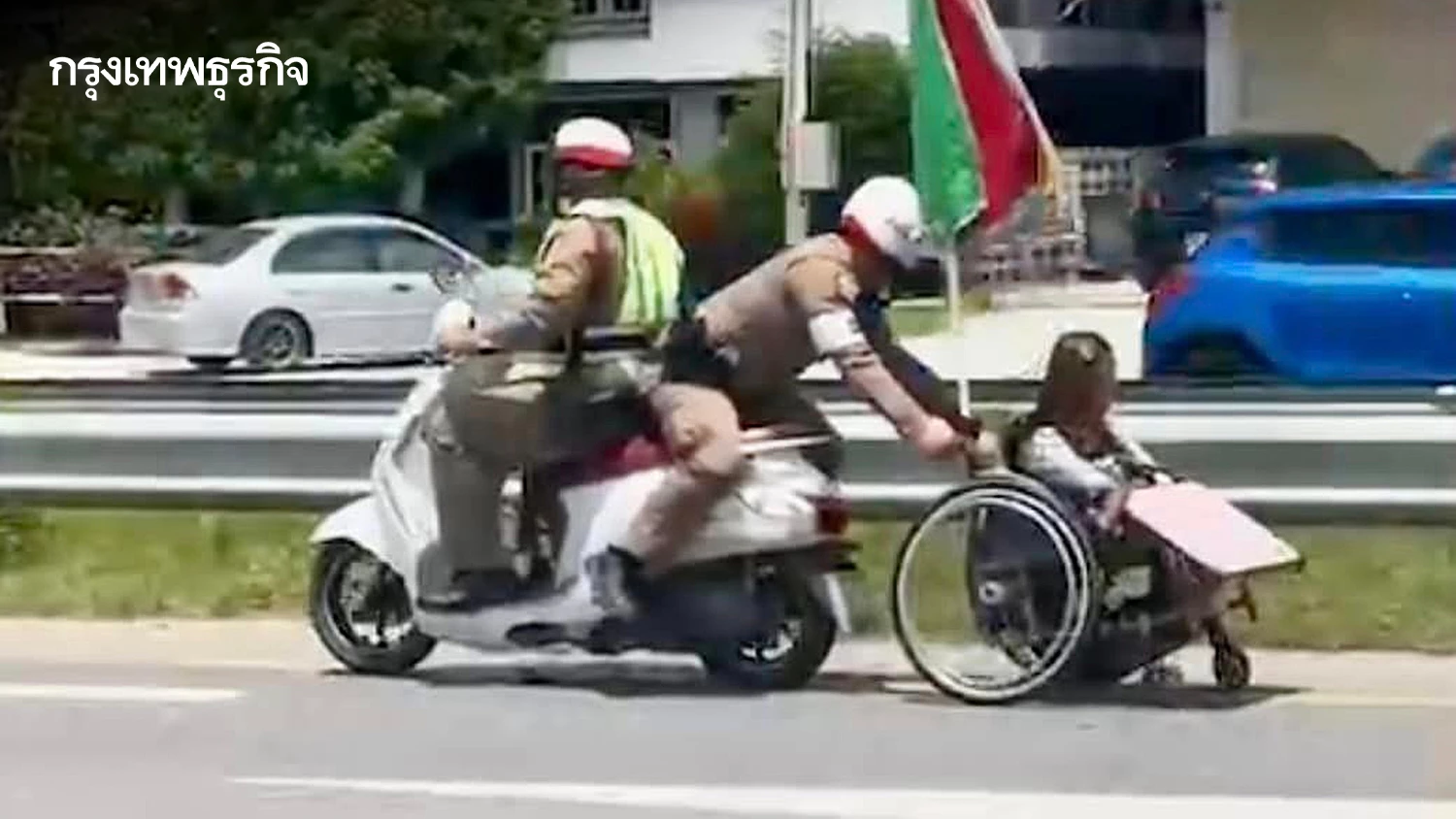 แห่ชื่นชม 2 ตำรวจจราจรน้ำดี ช่วยหญิงพิการนั่งวีลแชร์ข้ามถนน รอง ผบ.ตร. มอบใบประกาศเกียรติคุณ ตามโครงการ “ทำดี มีรางวัล”