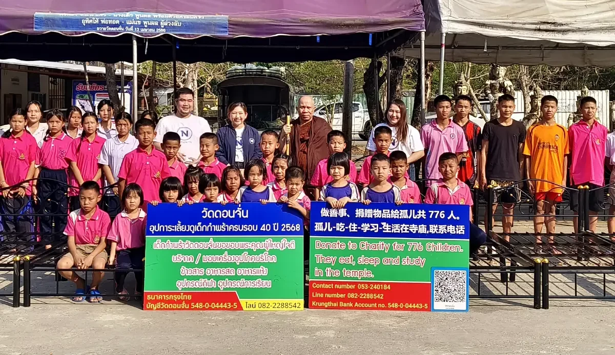คุณวิชาธร วงษ์พันธุ์ รองบรรณาธิการบริหาร เนชั่น ทีวี กล่าวว่า มูลนิธิเนชั่น โดยเนชั่นกรุ๊ป ได้กลับมาที่วัดดอนจั่น จ.เชียงใหม่ อีกครั้ง ซึ่งที่นี่เราได้ดำเนินการช่วยเหลือมาอย่างต่อเนื่อง ตั้งแต่วัดดอนจั่นประสบเหตุอุทกภัยเมื่อปี 2567 ในวันนี้ได้นำเตียงเหล็กมามอบให้ โดยได้รับการสนับสนุนจากสำนักงานสลากกินแบ่งรัฐบาล ต้องขอบคุณสำนักงานสลากกินแบ่งรัฐบาล ที่ได้เข้ามาช่วยเหลือเด็กกำพร้า ที่มาเรียนและอาศัยอยู่ที่วัดดอนจั่นแห่งนี้