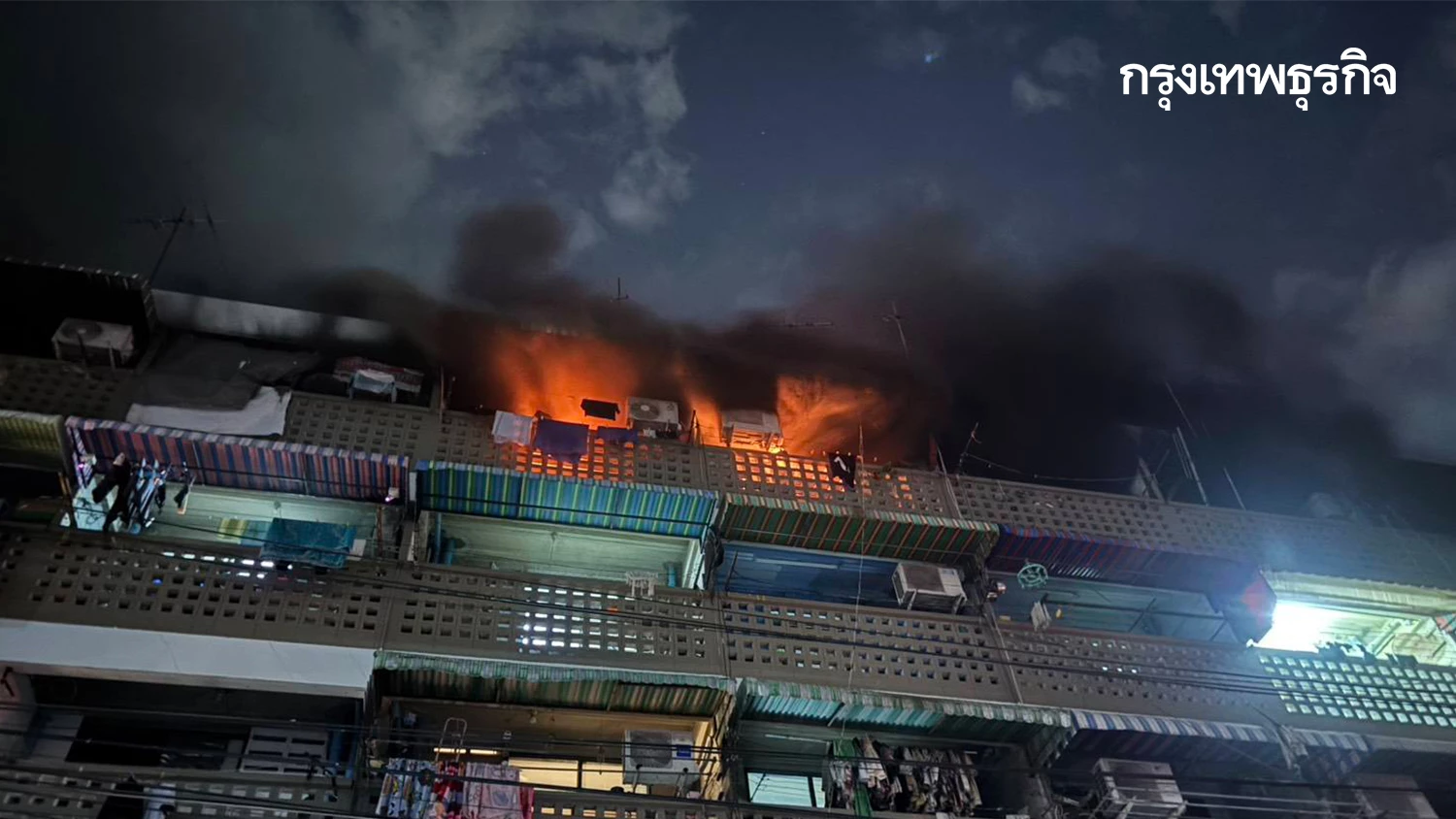 นาทีระทึก แสงเพลิงพุ่งชั้น 5 เจ้าหน้าที่รุดฉีดน้ำสกัด