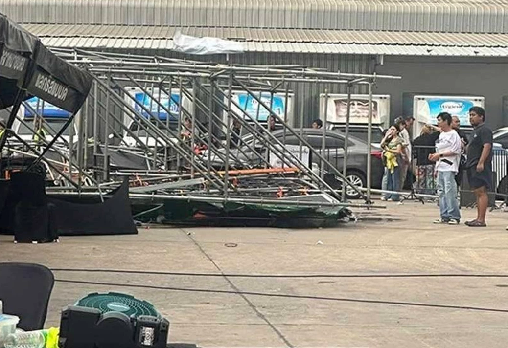 แรงลมพายุที่พัดมาอย่างกะทันหันทำให้โครงสร้างป้ายภายในบริเวณดังกล่าวต้านทานไม่ไหว ล้มพังครืนลงมาทับผู้ที่อยู่ในบริเวณนั้น ซึ่งขณะเกิดเหตุกำลังมีการเตรียมการจัดงานคอนเสิร์ต