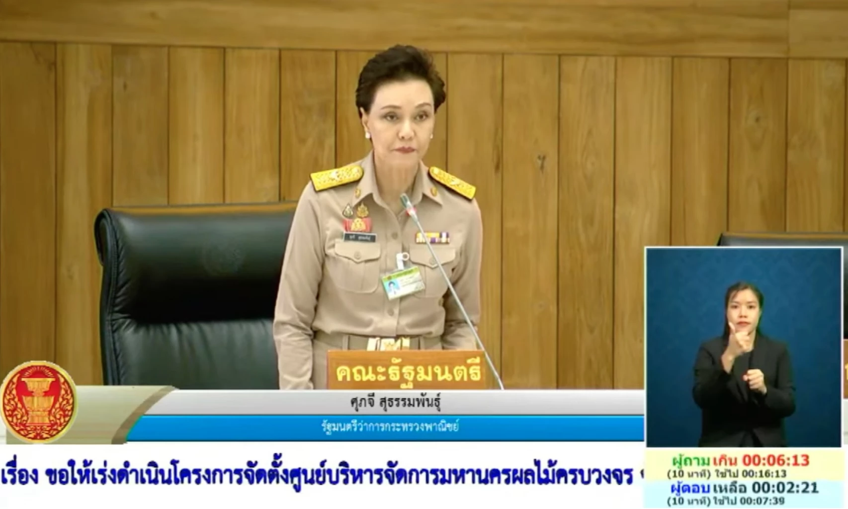 โดยนางศุภจี ชี้แจงว่า การจัดการพืชเกษตร รัฐบาลสนใจมุ่งมั่นทำให้ดี เกษตรกรทำรายได้ตั้งต้น 6% ของจีดีพี แต่มีแรงงาน 30% ถือไม่มีความสมดุล หากแก้ไขได้ จะทำให้คนใประเทศกินดีอยู่ดี เป็นความตั้งใจของรัฐบาลให้สินค้าเกษตรมีเสถียรภาพ อย่างไรก็ดีการดูแลสินค้าเกษตรต้องบูรณาการการแก้ปัญหาทุกภาคส่วน ขณะที่ในพื้นที่ จ.จันทบุรี ตนได้ลงพืนที่ได้เห็นล้งที่ทำถูกต้อง ทั้งนี้มีล้งจำนวนมากที่ให้ทีมงานตรวจดูแล หากไม่ดีต้องจัดการรวมถึงดูแลเรื่องคุณภาพ