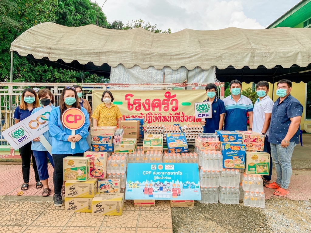 นำวัตถุดิบอาหาร และน้ำดื่มซีพี ภายใต้โครงการ "CPF ส่งอาหารจากใจ สู้ภัยน้ำท่วม" เสริมเสบียงเพื่อช่วยเหลือชาวสระบุรีและอ่างทอง เพื่อให้มั่นใจว่าทุกคนจะได้เข้าถึงอาหารปลอดภัยอย่างเพียงพอ ในช่วงเวลาที่ยากลำบากเช่นนี้