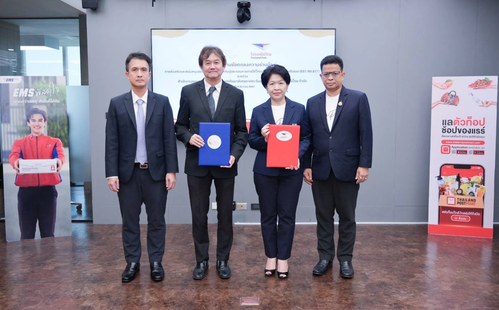 บริษัท ไปรษณีย์ไทย จำกัด ร่วมกับสำนักงานคณะกรรมการนโยบายเขตพัฒนาพิเศษภาคตะวันออก (สกพอ.) ลงนามบันทึกข้อตกลงความร่วมมือ (MOU) การส่งเสริมและสนับสนุนช่องทางการตลาดให้กับผู้ประกอบการภายใต้โครงการผลิตภัณฑ์ชุมชนต้นแบบ (EEC Select) เพื่อสนับสนุนและพัฒนาผลิตภัณฑ์ต้นแบบที่ผลิตโดยชุมชน วิสาหกิจชุมชน ในพื้นที่อีอีซี ซึ่งอยู่ในพื้นที่ 3 จังหวัด ได้แก่ ฉะเชิงเทรา ชลบุรี และระยอง